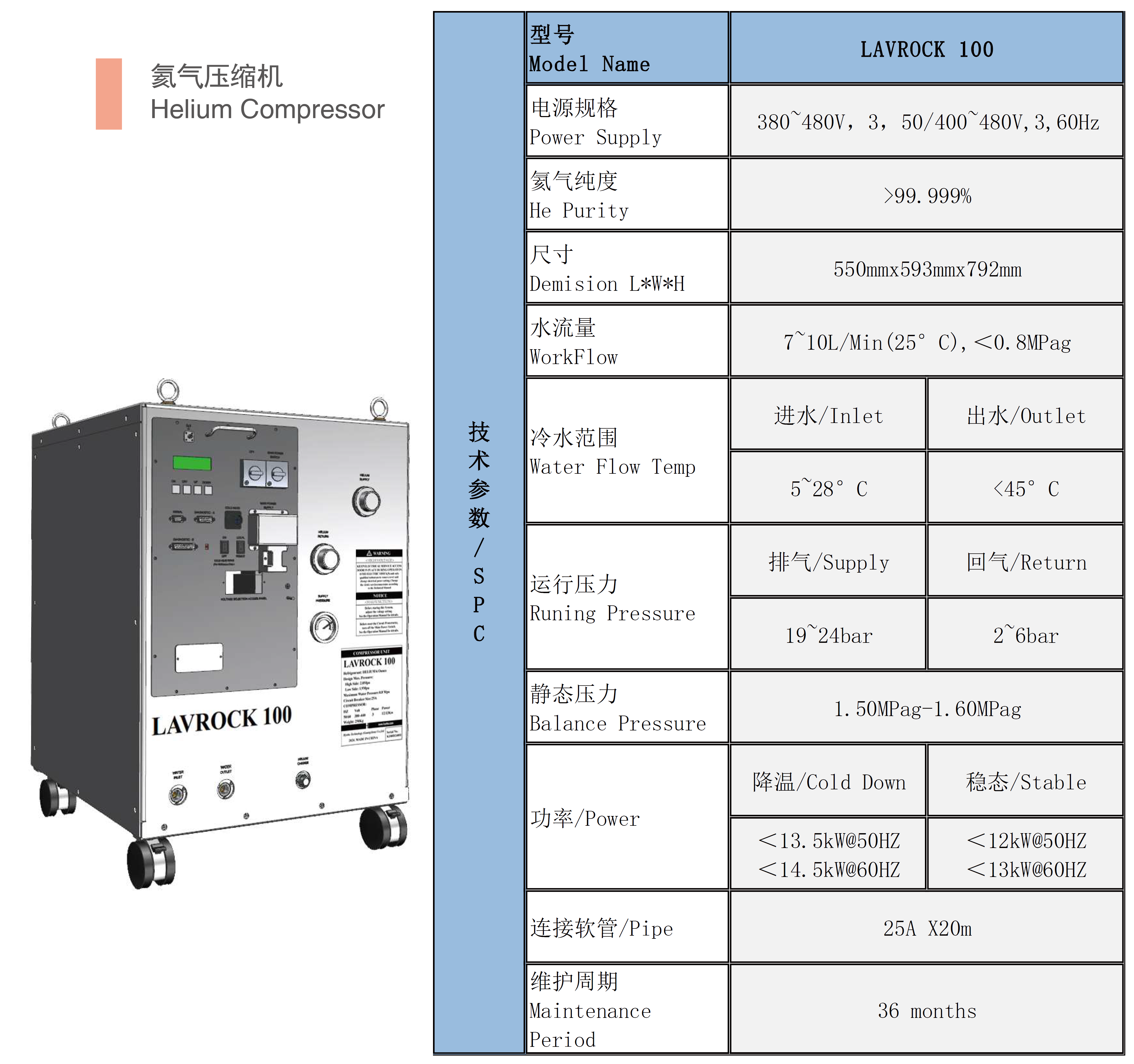 1) LAVROCK 100 compressor uses Hitachi's Inverter 10HP pressure packs, with large gas flow, sufficient performance and reliable stability